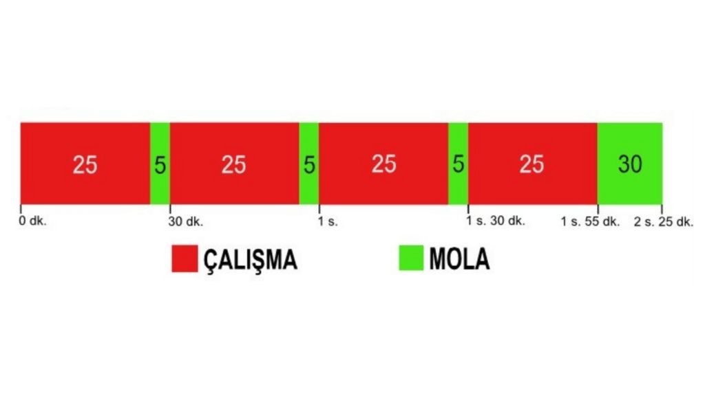 Pomodoro tekniği, belirli sürelerle odaklanmayı ve ardından kısa mola vererek dikkati canlı tutmayı sağlar. Bu teknik, uzun süreli çalışmalarda dikkat düzeyini artırabilir.